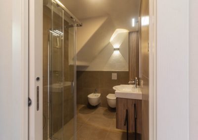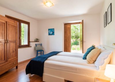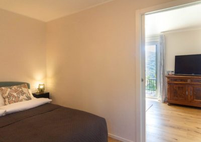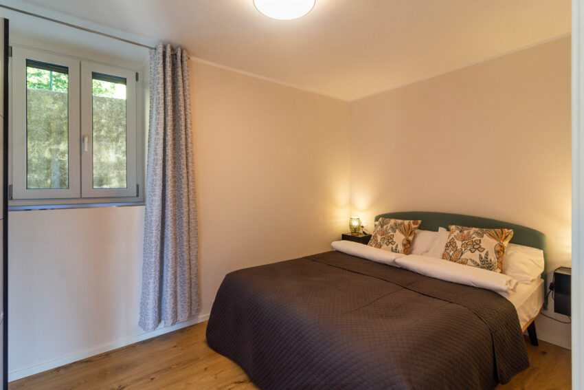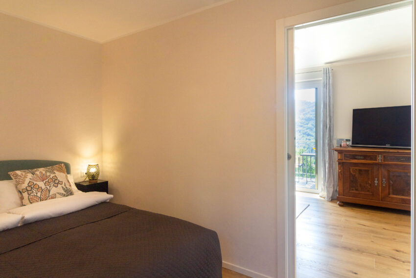 Separates Schlafzimmer mit Doppelbett (200×160) und großem Kleiderschrank. Beheizt werden kann die Wohnung mit einem Pelletofen. Geschmackvoll eingerichtetes Badezimmer mit Dusche, Fußbodenheizung und Handtuchheizkörper.